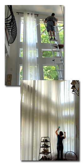 This material was an ideal choice for this client for a number of reasons. Several large dogs can create odors and this material helps to freshen the air. Another reason was that the fabric is available in 116" and 118” seamless fabric yards, meaning there are no unsightly seams in the draperies.